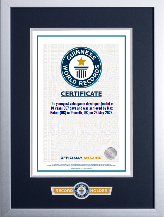 After five months of waiting, Guinness World Records has officially accepted my application, making me the Youngest Videogame Developer (male)! I’d like to thank the Penarth Library and V.O.G. Bots for nurturing my love of coding and my parents who supported me the whole way. For more posts, watch this space!